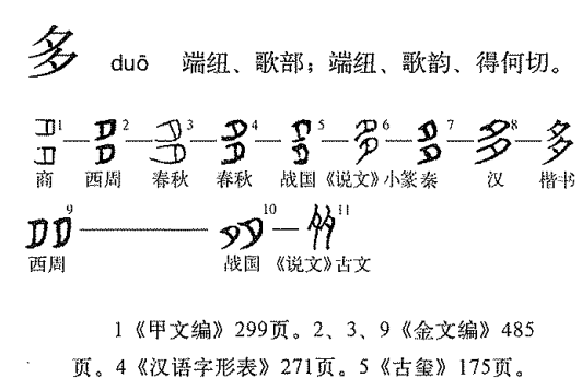 “多”字典中的甲骨文字形