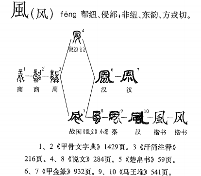 风 甲骨文字形 “风”的甲骨文字形 “风”字典中的甲骨文字形 “风”《字源》中的字形演变 字理阐发 甲骨文假凤为风,本为象形字,像凤鸟高冠修尾之形,如《字源》中的字形1。后加凡为声,且增画凤尾之珠毛纹饰,如《字源》中的字形2。 字理教学 该字属假借,与今文关系不强,不适合利用甲骨文字理进行教学。 字与文化 用“风”来比喻约定俗成的社会习惯来自上层的统治阶级。历代的统治者总想使百姓的社会习惯合于自已统治的阶级利益,总是要根据自己的阶级意志去改变社会的既成习惯,他们常常把这种影响和改造比喻成“风”把百姓的趋向比喻成“草”。如:《书·君陈》“尔惟风,下民惟草”:《论语·颜渊》“季康子问政于孔子曰:如杀无道以就有道,何如?孔子对曰:子为政,焉用杀?子欲善而民善矣。君子之德风,小人之德草;草上之风,必偃”。正因为“风”意味着“君子”对“小人”的传统习惯的改造,是统治阶级在刑、罚之外从精神上去麻痹百姓的一手,所以“风”常和统治者的政令、教化、礼仪、道德等有关。